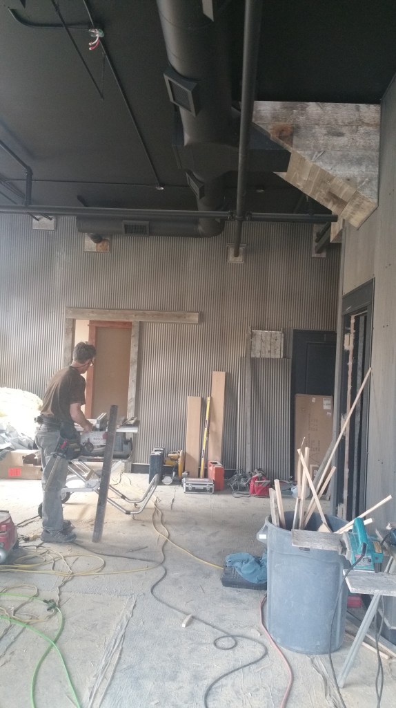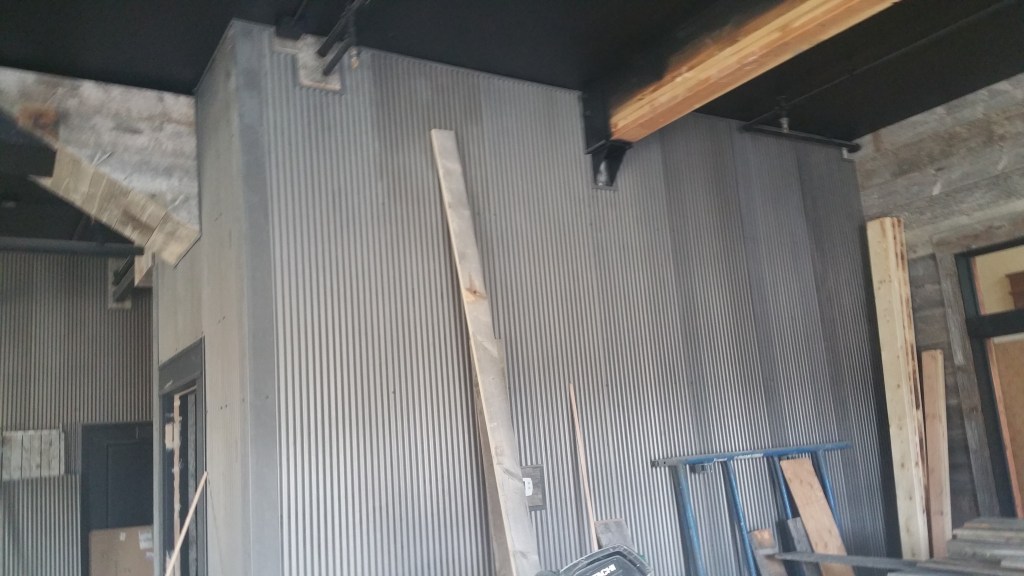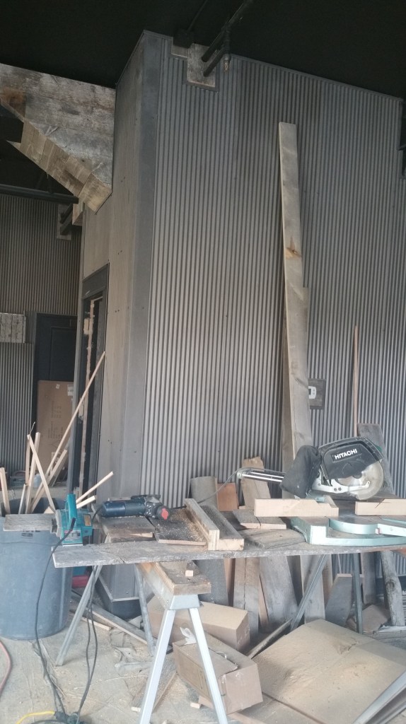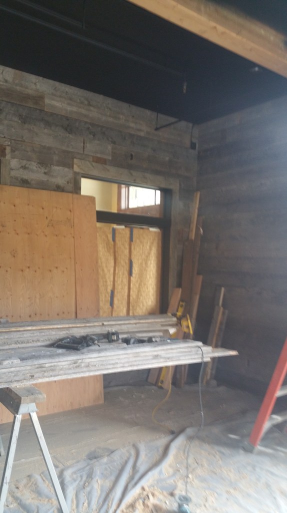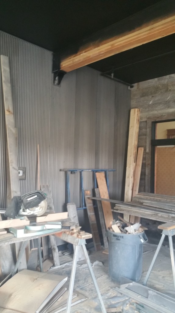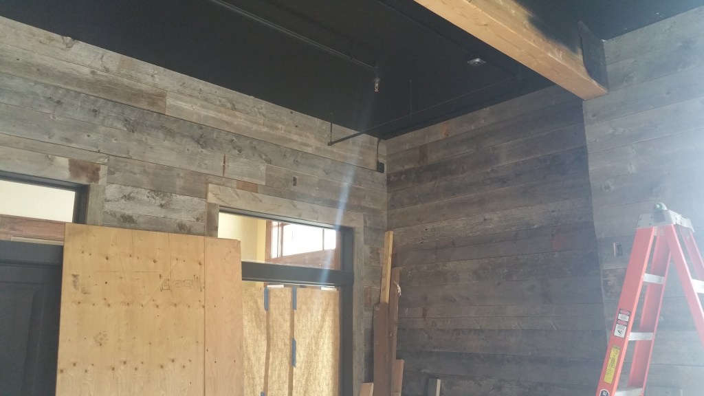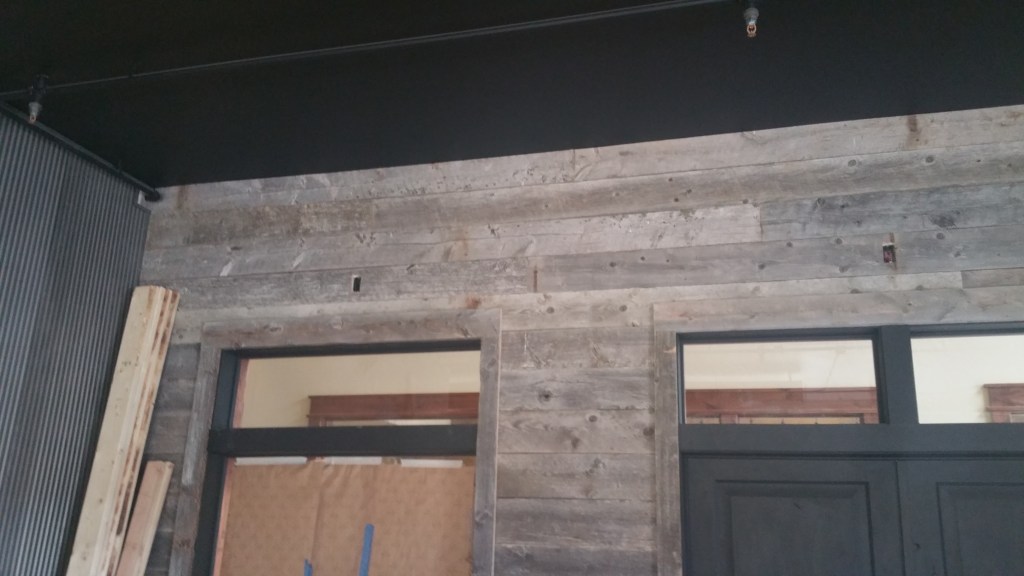 These are pictures of a barnwood and steel interior siding project from Big Sky